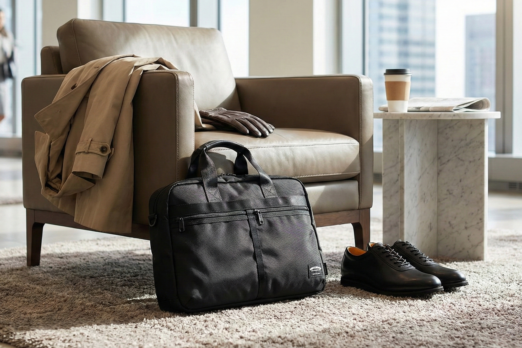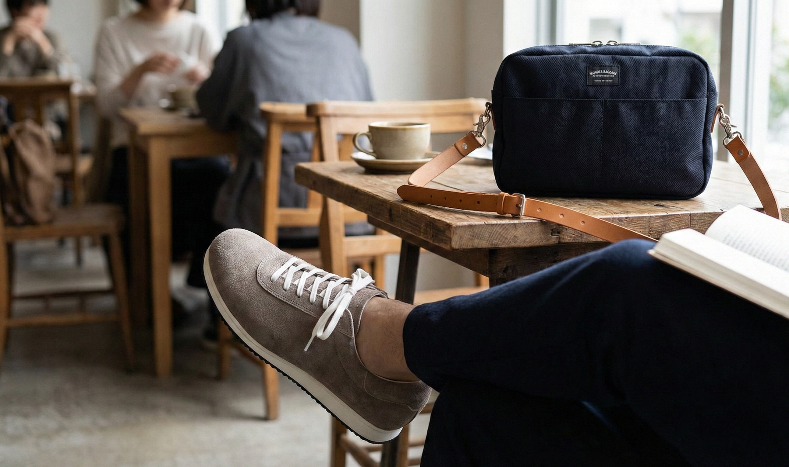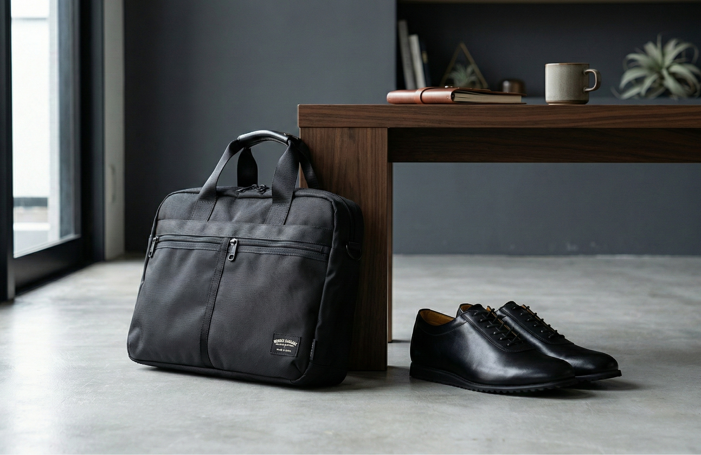 バリスティックナイロンの頼もしさと、レザーシューズの品格。